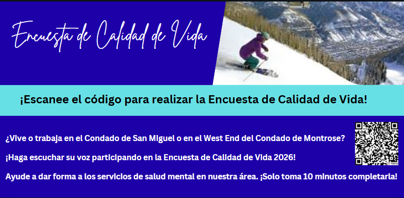 Si vive o trabaja en el Condado de San Miguel o en el West End del Condado de Montrose, haga clic en el botón a continuación para completar la Encuesta de Calidad de Vida para 2026: