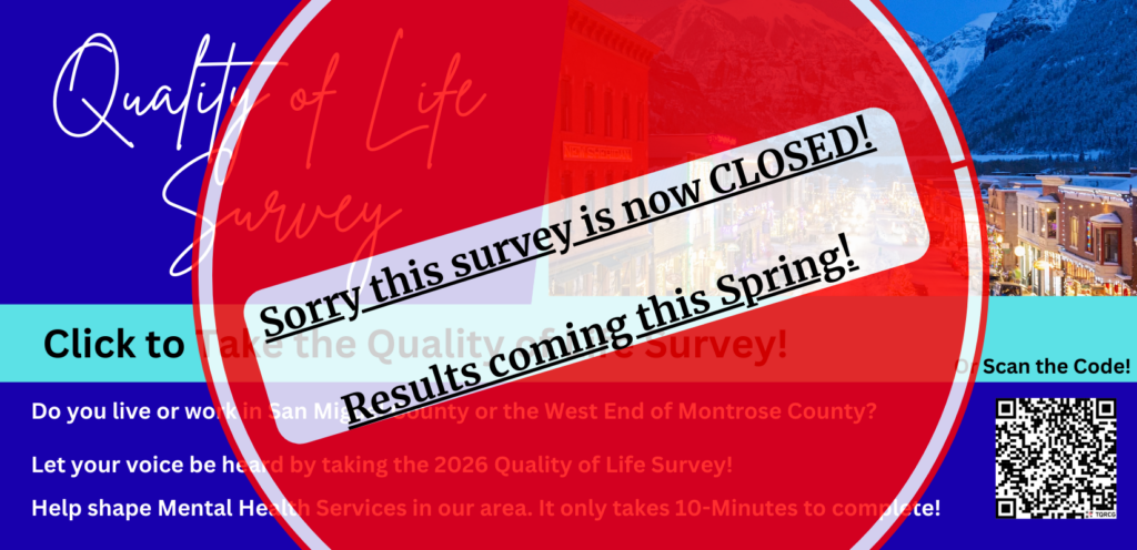 If you live or work in San Miguel County or the West End of Montrose County, click the button or image below to take the Quality of Life Survey for 2026: